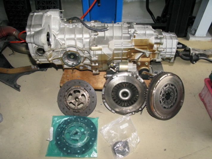 当然エンジンを降ろすと 写真のミッションも降ろしエンジン台に