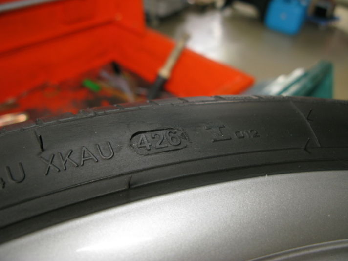 タイヤメーカーによって見方が違いますが まん中の写真の426が製造年月日になります 426=42週目の96年製造です