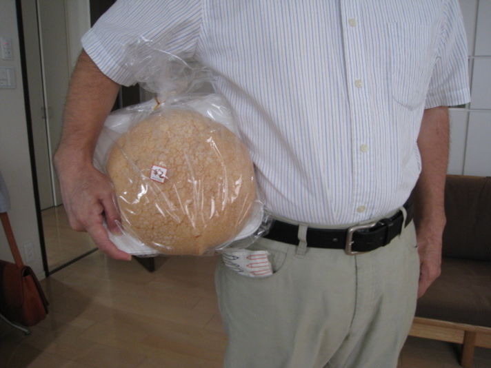 今週は仕事の合間にクレヨン74カレラの慣らし運転をしていました クレヨンの裏の湖西道路も何度も乗りましたが 一気に乗りきるにはやはり 名神高速を走るのが楽です そんな中 昼ご飯も食べずに走っていたので三時ぐらいに お腹がすき 名神の多賀サービスエリアに寄ることにしました そして私の大好物のタコ天を食べて店内をうろうろと見ているとなんと 限定の言葉が目に入ってきました解りやすい性格なので読んでみると写真のデカ メロンパンの販売のチラシです これは買うしかない(これをお土産に持って帰れば 家族の今日はヒーローだ?)そしてレジに行くとお客様ラッキーです一日30個の限定発売で最後の一つですよ.......この言葉何となく嬉しい言葉です (単純バカですから)そしてレジの横の店員が大きさも大きいですが味も良く美味しいですよ と....またまた嬉しい一言......これで今日のヒーロー確定です(笑) 家に持ち帰り 家内に何これなに!よしよし....娘に見せると...それ私養老のサービスエリアで発見して写真とって友達に送ったの一言....残念しかし 娘にとって600円は大金なので買わなかったのでラッキーと言われ....ホットしました............. 世のお父さん方600円で家族のヒーローになれるかも知れないメガメロンパン見つけたら買ってみてください 通常のメロンパンの6個分の大きさです 私の知る限り多賀 養老のサービスエリアでは確認済みです ただし限定ですよ(笑) 最後の写真は 私のメガ腹との共演です まだまだメガメロンパンには負けません(笑)
