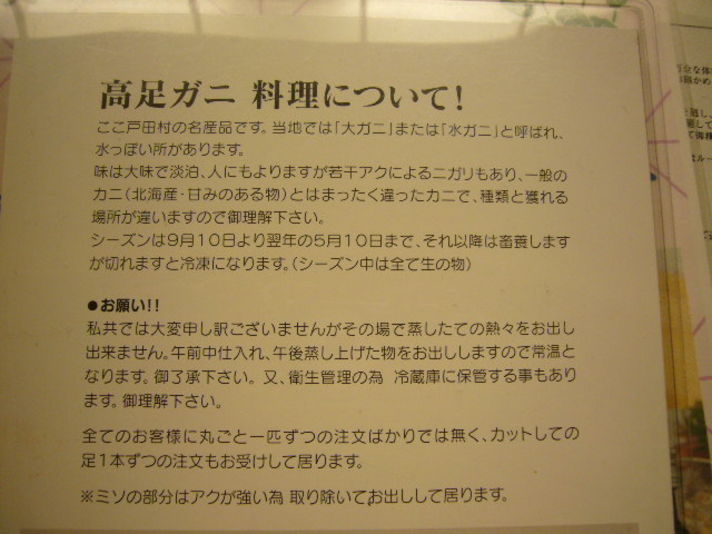 静岡の宿は西伊豆の戸田漁港の温泉やどを今回はチョイス.....家内が以前から一度行って見たく 伊豆の隠れ家的な場所です 私は景色も良いのですが...........やはり 食べ物が.......地物.....そこで色々と調べると.....戸田漁港でしかあまり水揚げのないか蟹...高足蟹......足る物があることに気づき(深海300メートルから400メートルに生息の蟹) 通常のコースの高足蟹お試しコース(一人足一本)から二人でい 一匹付く 高足蟹コースがまん中の写真の物です 味は左の写真に書いてある通りの味です ほとんど味が無く蟹の濃厚な甘味も無くあっさりです みそは食べられないそうです........でも......旅くれば.......その地物を食べるのが 私の幸せを感じるところです...........................旅...地物...温泉.....ポルシェ.........仕事&趣味.....皆さん申し訳御座いません..... 全国の皆さん温泉と美味しい物があれば 喜んでクレヨンポルシェお届けに行きます(笑) (納車はコードライバー(ナビゲーター家内)と夫婦で納車します) |