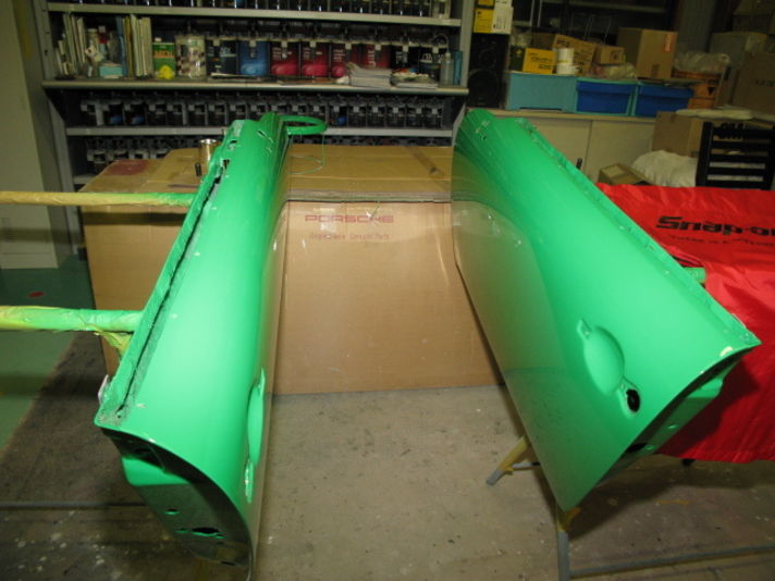 いよいよドアが塗りあがりました 左の写真...... まん中の写真は ドアモールとアクリルの窓............... そして 朝一番の空気が綺麗なときに 外の光にあてて ドアとボディーとの最後の色の確認作業です...(当然ブース内 色調合時など何度も色あわせはおこなっています) ........... 今回の仕上がりをクレヨンの匠聞くと90点〜95点との事.....今までに100点を聞いた事が無いので かなりの高得点の仕上がりです (職人は自分の仕事に100パーセント満足した時点で 進歩が無くなるらしいです......)...............なるほど...................... ちなみに 塗りなおし落第点は何点かは今度効きたいと思います(笑) これから モール アクリルなどの組み付け作業おこない最後に磨き完成です...............クレヨン2号君.....明日取りに来てくださいね.....