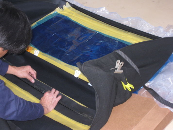 そして 一本はめるごとに まん中の写真のようにかぶせて 調整して行きます また グローメットも新品に交換します