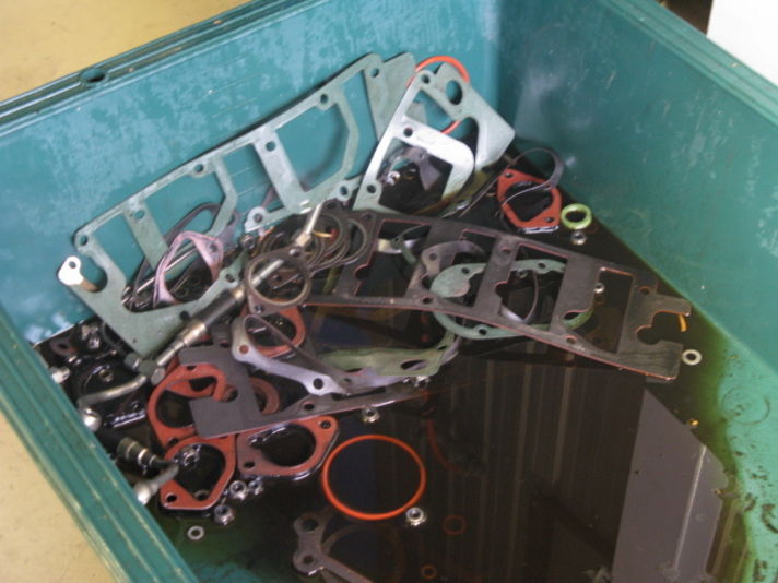 まん中の写真は今回の整備で交換した古いパッキン オーリング ナット ボルト ホースなどの一部です.