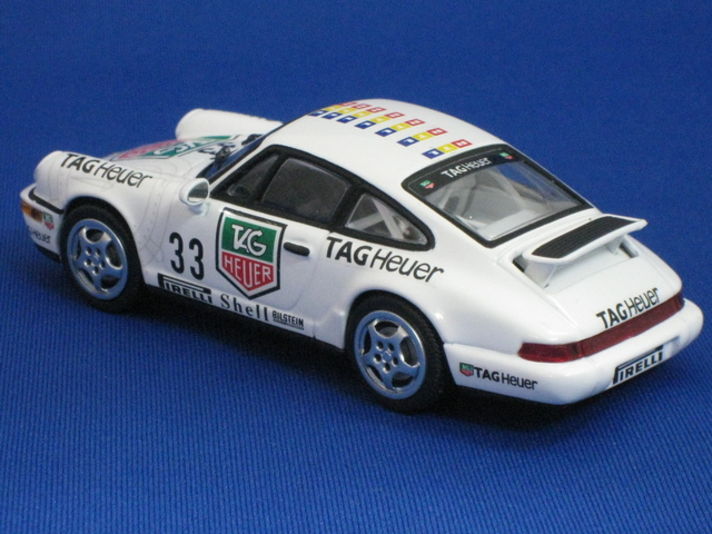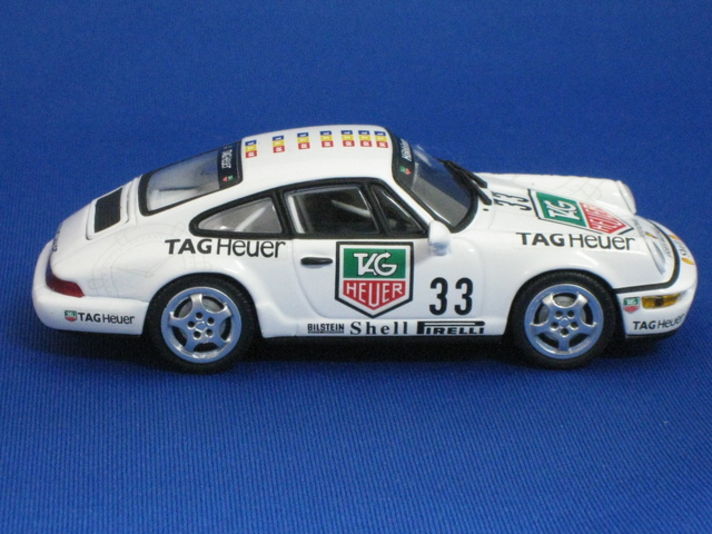 ここ半年ほど いきつけのミニカーショップに行きませんでした? 普段は ポルシェのミニカーの新作が入庫すると電話で知らせていただくのですが なぜか電話も無く私も行かず?先日寄ったところ何台かのミニカーが発売されていました そんなことで何台か購入してきたものを 順番に紹介したいと思います その中でも 私の知るかぎり雑誌の限定?...など ポルシェディーラーが販売している セットの中にしか見当たらないモデルのタイプ964カレラボディーが発売されていました (@_@) ノーマルボディーでストリートモデルでは有りませんが ストリートモデルに近いカップカーが発売されていました このモデルは 写真でもお解かり頂けると思いますがリアウィングがリアタイヤを動かすとせり上がる用に作られている 964マニアにはお勧めの一台です 是非ミニカーショップに行って購入してみてください