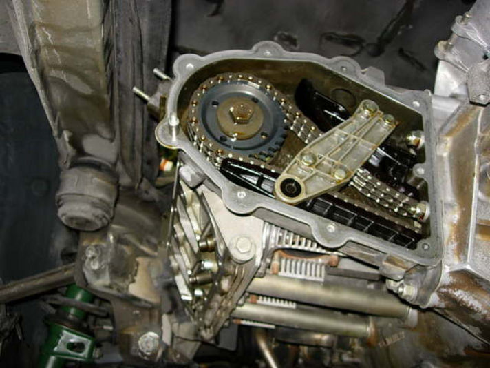 エンジン後方にある、タイミングチェーンのカバーガスケット&プレッシャーリングを交換しています、油圧でチェーンを張っているテンショナーカバーガスケット、オイルラインピースのジョイントOリングも交換していきます。993のエンジンは左右のカムタイミング調整が必要ない構造になっています。