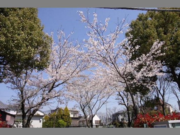 クレヨンの横の公園の桜の木満開