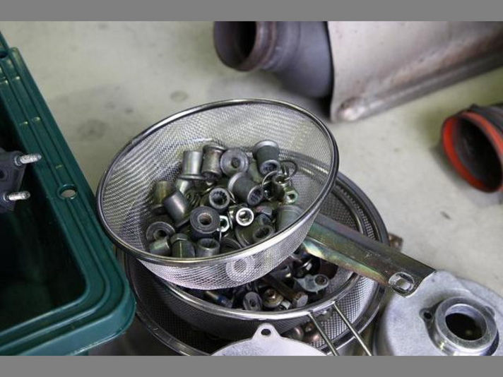 右の写真は再生可能なビス、ナット類を綺麗に洗浄したところです