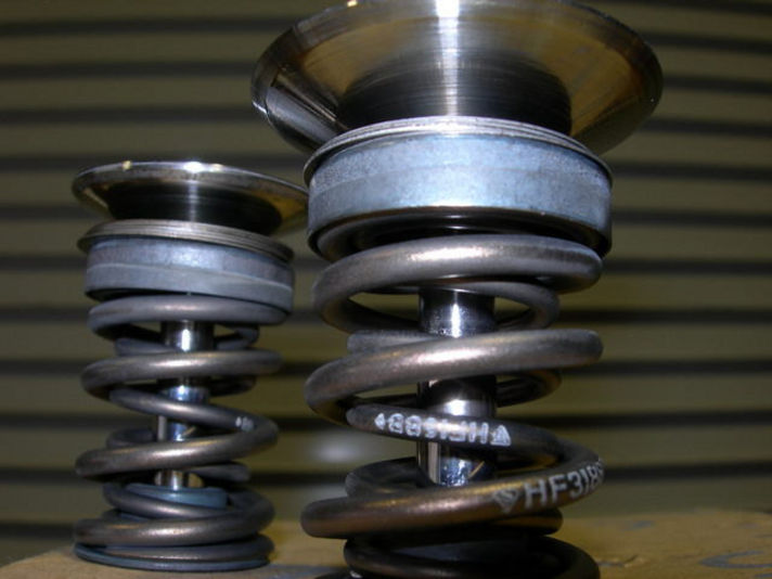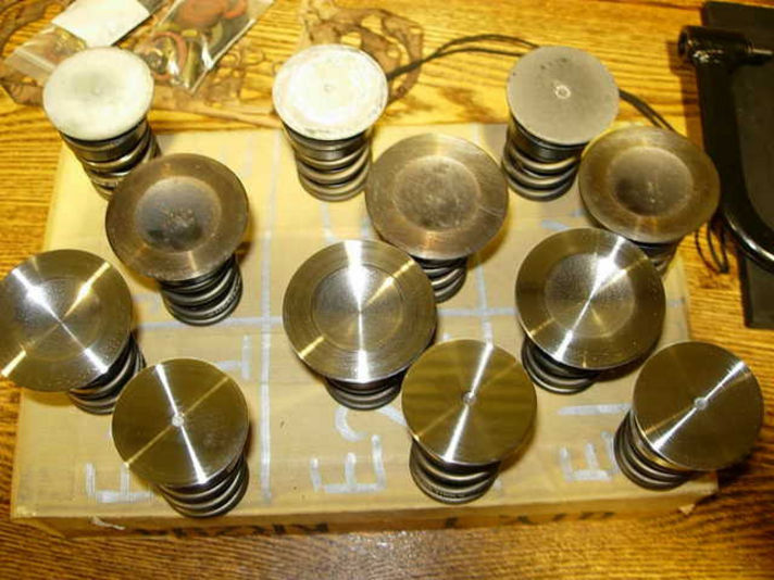 シリンダーヘッドに綺麗に磨いた、バルブを組み付けます。当然ステムシールも新しい物の交換です。インテーク・エキゾーストあわせて12個のバルブがあります、一本一本丁寧に仕上げてピカピカです。