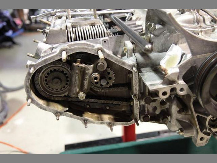 カムハウジングにカムシャフトを入れてカムギャー取り付け チェーンを張り バルブタイミングをあわしていきます 来週半ばにはエンジンがかかります