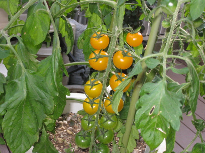 ちなみに 黄色いトマト21個鈴なりに生っているのが 家内のプチ自慢です...................右の写真を拡大して.....数を数えて見てやってください...............(笑)