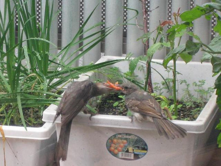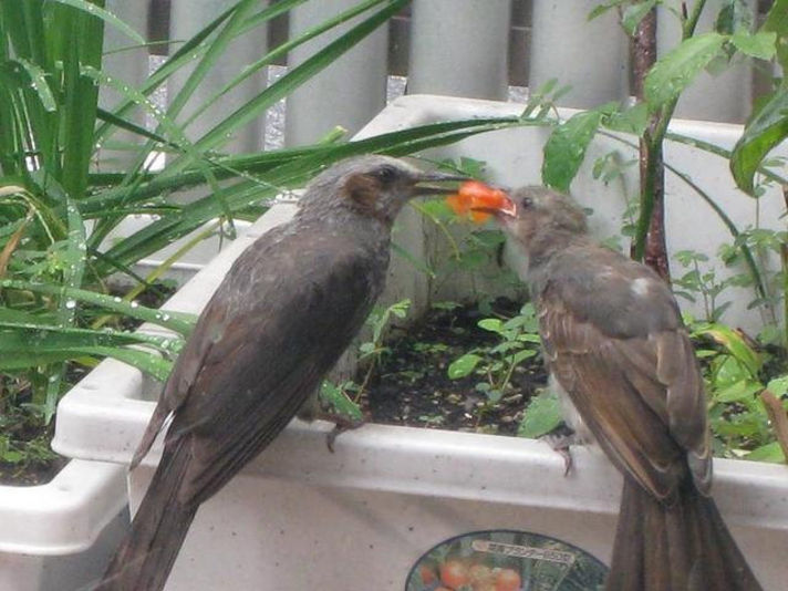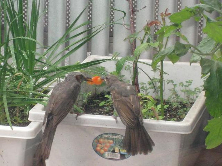 先日このニュースサイトで紹介した 家庭菜園で初の収穫となる予定の トマトが..............鳥に........食べられてしまいました..... 実は 最近野鳥が我が家のベランダに居るのを発見していた家内は 黄色のトマトにはネットをかけて鳥を防御していました 赤トマトには ネットをかげずにいると.................. 野鳥ですね........空から................. それを見ているかのように...........食べにきますね......... 家内と二人で息をひそめながら見ていると親鳥が子どもに 赤トマトを取り 子どもが食べられる大きさに砕いているではありませんか......... これを見ると.........家内が赤トマトはこの親子にプレゼンかな.......... と.......つぶやいていました......私も横で納得です こんな鳥でも 子どもを育てているのに 世の中には毎年パチンコ店の 駐車場に車内に子どもを放置して死なせてしまう親が居るのは この野鳥以下ですね............と思う私は.............. |