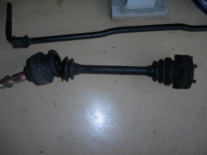 トランスミッションからタイヤに回転を伝えるドライブシャフトです。