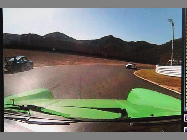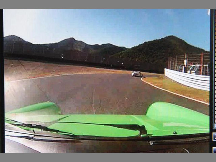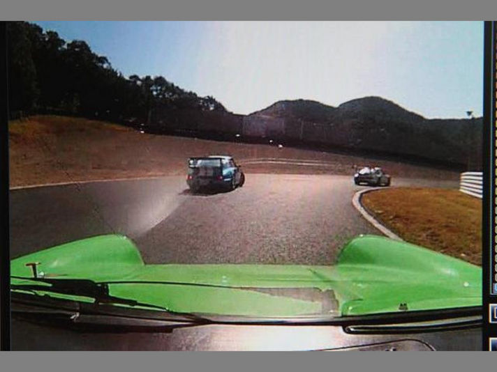 右の写真私の視界から消えました.........すると私の右横にシェルポ964が当然せまってきました......シェルポ964が左側のタイヤをコースアウトして復帰する時にスピン......私あわててよけるがリア流れて