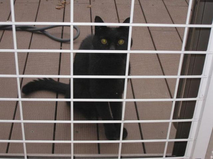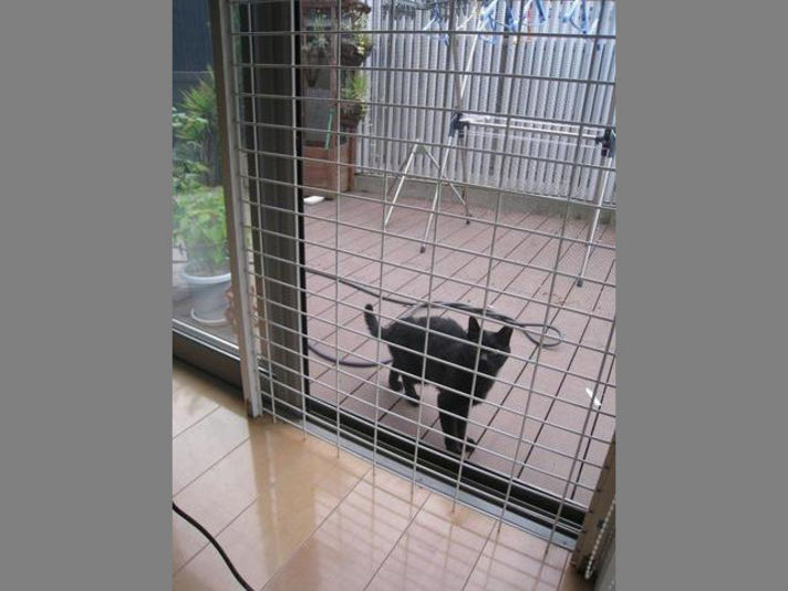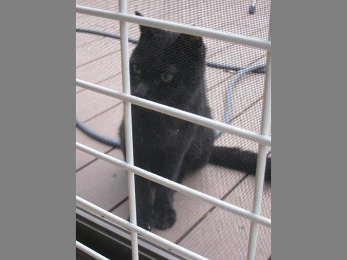 今日で5日になります 突然ウッドデッキに写真の生後1年未満と思われる黒猫が現れました よろよろで今でも倒れそうな感じです.....見かねた家内が我が家の猫用のキャットフード与えたのが................ 我が家には(家猫) 外には出さない2階を住処にしている猫が二匹います......三匹に増えるのは無理があります.............. 心を鬼にして二日間ほど餌を与えなかったらどこかに行くと思っていました.......それが3日目になっても我が家から一歩も外にでません 夜な夜な見に行ってもいてます......こまりはて体力が落ちているので.....見ていられなくなり.....3日目朝....二度目の餌をあたえました......この時点で覚悟は出来ていました....... 家の中には飼う事は出来ないので 外猫として飼うか...... 家内が一度目に餌をあたえる時は美味い美味いと日本語を話しながら食べたとのこと.....これほんまです。。。携帯の動画で写したのを見ましたが 美味い美味いとほんとうに言ってたべていました 二度目の餌をあたえる時も言うのかなと思っていましたが.....ニャーニャー でした それからは想像通り毎日二回朝晩餌をやる事にしています この猫色々と特技があります........まず人を怖がりません 足にまとわりつきます......良く見ると............. 背中の骨が少し変形していて後ろ足も良く見るとちどり足なのですが ジャンプ力があり 私の肩まで一気に飛びつき駆け上がり首筋をなめて 下りません....これが昔聞いたことのある肩に乗る猫?....... 写真でお解かり頂けると思いますが猫の悪さの網戸なども引っかいたりしません 人間の嫌がることをまったくしません....人を癒す事しかしない....生きる手段を知っているかのような....無害な猫です 近所の方の話を聞くと...以前町内に猫屋敷....高年齢のお婆さんが 猫を10匹以上かわれていて....今年の最初に体が悪くなられて施設に入られ多くの猫が里親に出されて二匹だけどこかに行ったとの事...... おそらくその猫が我が現在いるのでは......一匹は黒猫との事 .....納得....今日で6日.....また報告します