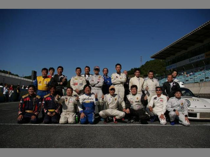 真ん中の写真 今回からユーロカップでは 決勝のスターティンググリッドに付いて 全員が車から降りてのスタートラインでの記念撮影が行われました 911DAYS日比野編集長を先頭に正座で挑む前列左(これから走るコースにご無礼の無いように......大回転しないためにも正座です(笑)。。。。これが今回の勝因ですかね)