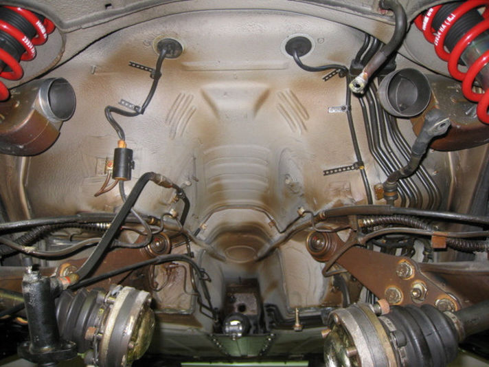 今日はもう早11月ですね! 今日はメカニック饗庭君おやすみです。そこでボディの綺麗なワンショット エンジンの降りたエンジンルームからセンタートンネルの写真です。 ほとんど汚れていない状態がおわかりでしょうか・・・ 各パーツが茶色くなっているのは、新車時に吹き付けられた錆止めです 剥がれ落ちる事無く、汚れることも無い状態で保たれています。 とても、18年の時を過ごしたクルマには思えないほど綺麗です(^^) また、エンジルームに配置できなかった、ヒーターブロアモーターファンがリヤフェンダー内に左右配置されています、カレラではエンジンルームに一個有るだけですが、ターボは左右です。限られたスペースに、納めるテクニックはポルシェならではデス!!関心関心こんなことを思うのは、僕だけなのでしょうか・・・”クレヨン いとう” |