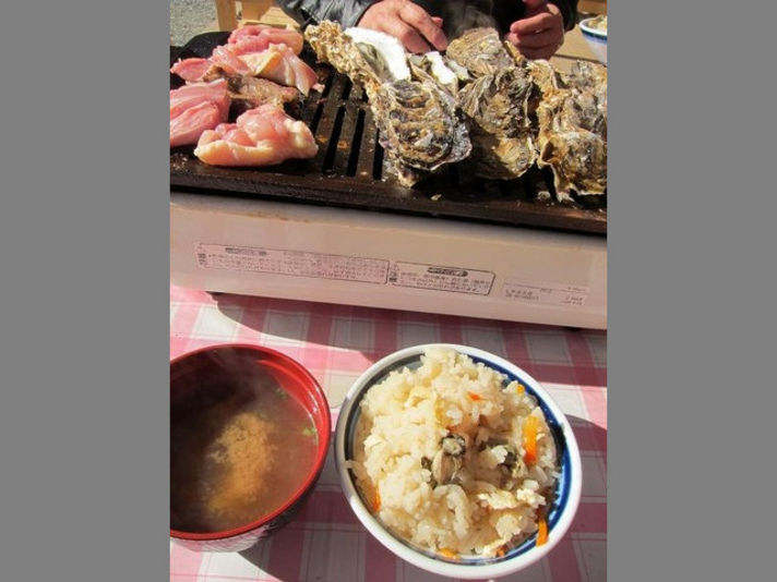 海の横で新鮮な牡蠣を食べるので美味しいですよ。。。。。。