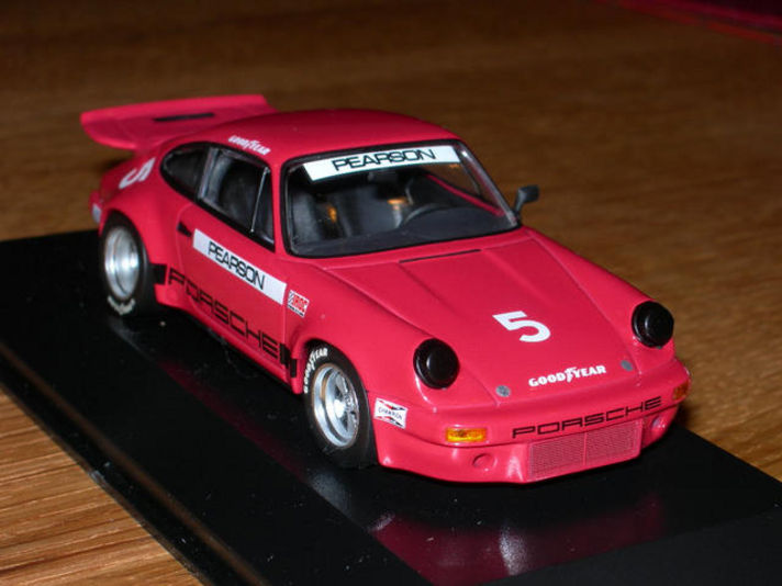 このモデルは非常にマニアックなモデルですボディーは930でエンジンは2.8のツインプラグスライドバルブが付いているRSRです.以前このニュースで紹介してカレラRS3.0とは違い 完全なレーシングカーで.内装もフルロールゲージに消火器ウイングはラバーなしのフルFRP製が付いて.タイヤもスリックタイヤを履いているモデルです ナローボディーの2.8RSRは良く在るのですがこのタイプは非常に珍しく私も始めてです 上記の文章は私の想像で違っている所も在ると思いますこの機種に詳しい方教えて記ください