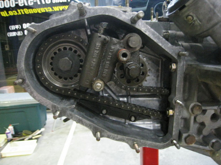 タイミングチェーンのケースカバーを外しガスケット交換です 左右にカムシャフトを駆動するチェーンが有ります。 右端の写真は、3.2カレラのチェーンの取り回しです、964と比べるとずいぶん違いが有ります・・・964になりシンプルです。回転のロスやずれなどを少なくするように変更したのでしょうか? 基本は変わりませんが、進化をしているのはさすがだと思います。 クレヨンスタッフも意識を深め頑張っていきます。”クレヨンいとう” |