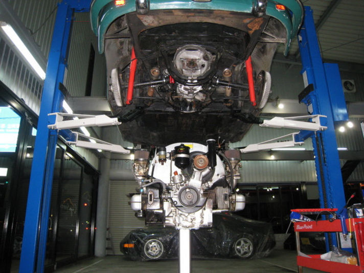 ポルシェのエンジンスタンドにぴったりと取り付けられました、356から993まで同じスタンドが使えるのも、面白い物ですよね!”クレヨンいとう”