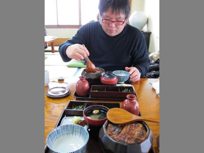 左の写真は911DAYS日比野氏と私が頼んだ、ひつまぶしです。 (実は名古屋にいながら、日比野氏はこの店に来たことがないということです。(笑))