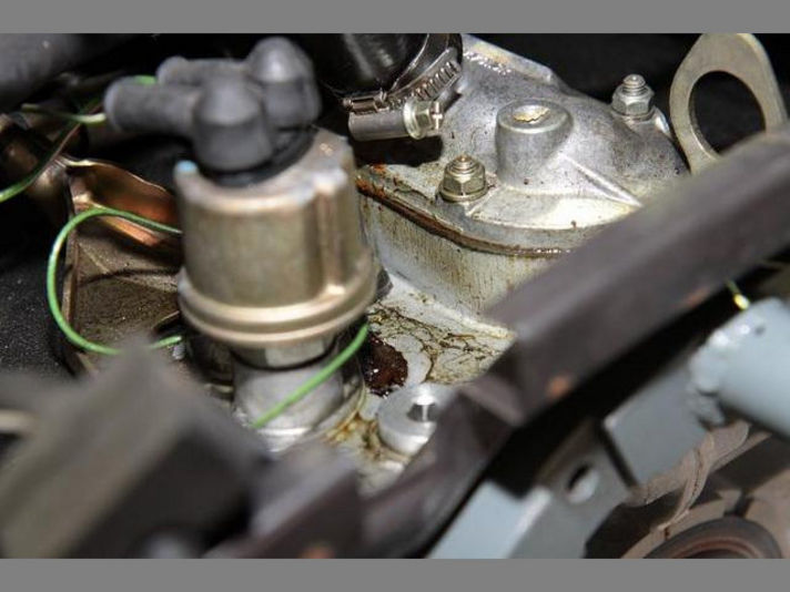 右の写真カムハウジングのオイル漏れ確認 ほとんどの世の中の空冷ポルシェはこの程度のオイル漏れはあたりまえにあるぐらいです