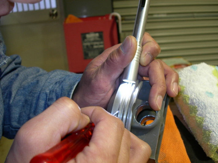 洗浄したピストン シリンダー リングなどをクランクケースに組み付け