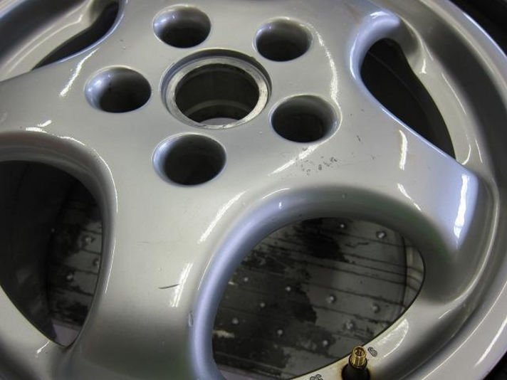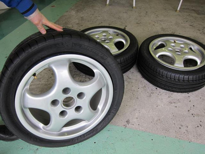 先日の連休沢山のご来店ありがとうございます 販売は二月三月と静かでしたが 連休と連休明けからお問い合わせ 成約と 忙しくなり....このまま長いトンネルを抜ける予感です..... こんなときには 少しでも手があいたスタッフがクレヨンポルシェになるように事前に作業を行うようにしています 先日リフトに上げピワーステオイルのオイル漏れで修理をしたついでに ホイルに写真でお分かり頂けると思いますが キズがあるので直すことにしました タイヤも経年劣化及ひびが入っていたため 新品のパイロットスポーツに四本交換です クレヨンではホイルの綺麗 綺麗作戦では新品のタイヤを真ん中の写真でお解かり頂けると思いますが 事前にはめ込みリフレッシュします これは リフレッシュしたホイルをタイヤを入れるときにホイルにキズが入らないための作業です 今年のクレヨンの合言葉......手間暇おしまず