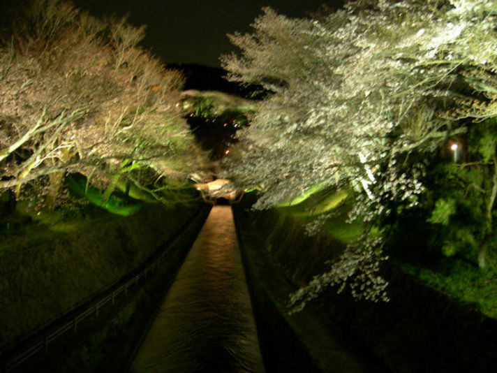 三井寺に行く道の途中の疏水の門のライトアップです