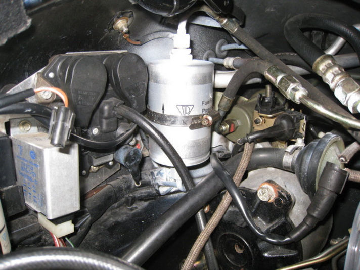エンジンルーム内に有る、フューエルフィルタ交換