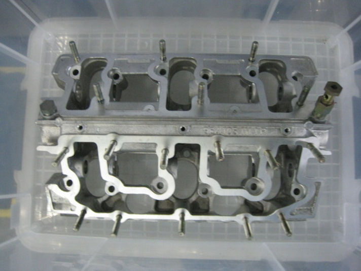 取り外した状態のヘッドには、スタッドボルトが有ります、このボルト裏からオイルがにじんでいます。すべて抜いて対策いていきます。