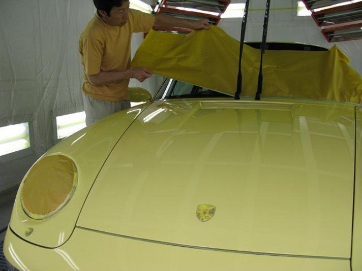 左から 洗車 エアーブロー マスキングをしていきます