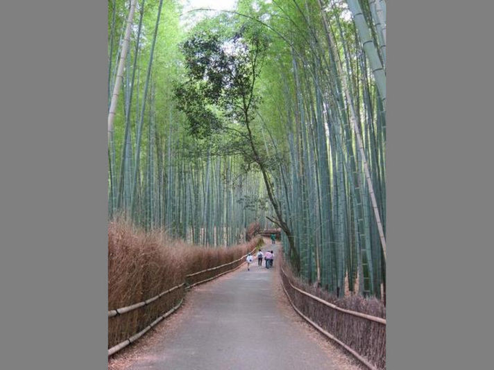 右の写真は竹林です。 渡月橋から歩いて五分、ここは夏でも涼しく昨日の体感温度30度を超える夏日も涼しく、心が休まるところです。 映画のロケ地にもなっている場所です。