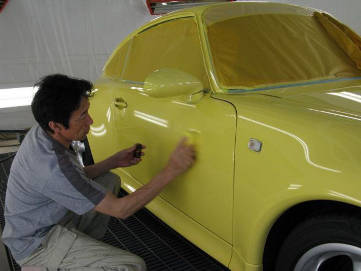写真は クレヨンの匠が磨き上げているところです そしてコーティング剤を塗りこんでいます.....これも下地ができているからこそむらなく仕上げられます