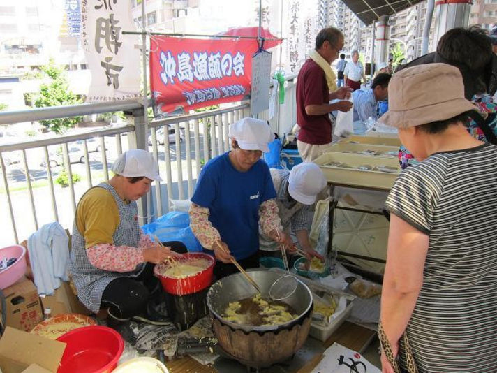 その中で私が注目したお店が真ん中の写真のものです。 沖島から来た漁師さんとその奥さんが、とれたてのあゆをてんぷらにしています・・・300円…迷わず購入 他にも右の写真でおわかりいただけるように、煮つけもたくさん売っています。 その中に琵琶マスの煮つけを見つけましたので、これも購入 骨は多いのですが、柔らかく、臭みもないのでとてもおいしいです。 東京のあるお店では一切れ何万円で出されることもある魚です(笑)