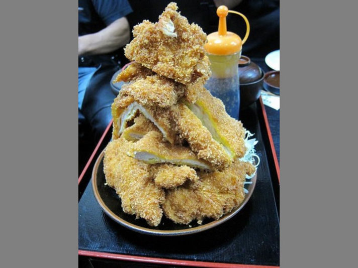 真ん中の写真 これが話題のチキンカツ大盛り定食です。 たしか値段は1580円・・・六人で