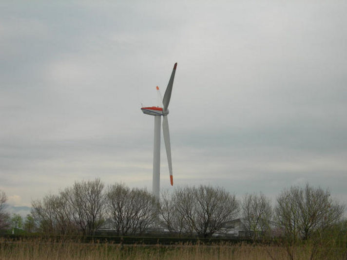 ここの前にびわこだけの風力発電機あります