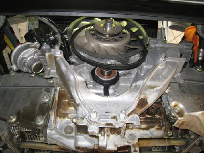 作業途中・・・パワステアリングポンプ・ハウジングケースにオイルの滲みがありました。各パーツを外してメンテナンスしていきます。