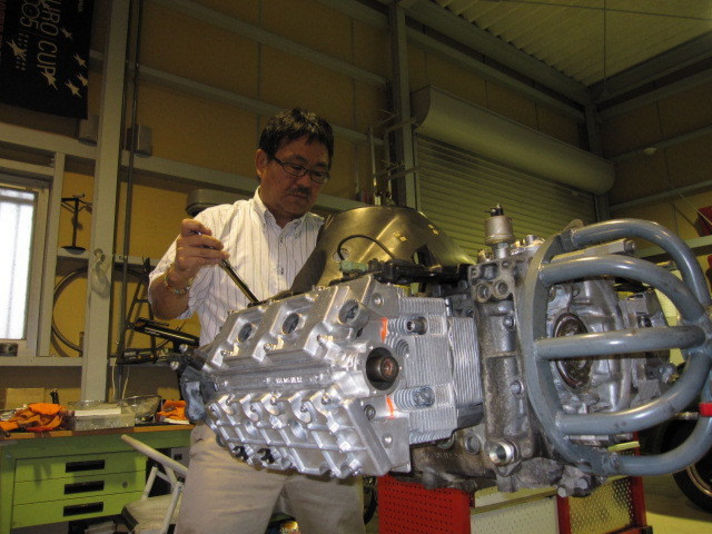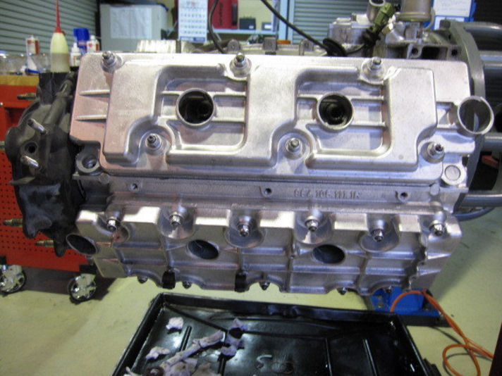 真ん中の写真 吸気系排気系電気系以外でエンジン本体の組みあがりが終わった状態です。