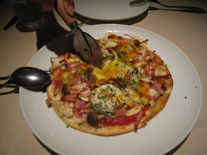 ベーコンときのこ類そして半熟卵の乗った左の写真のものです。