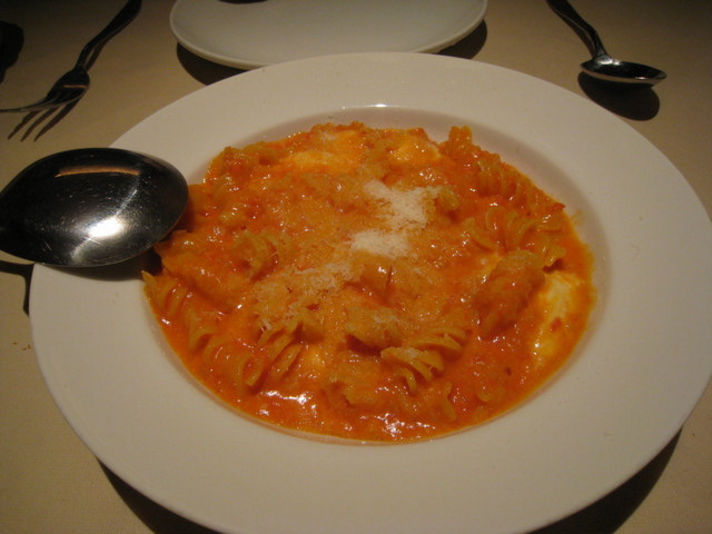 (名前は忘れましたが)トマトソースとチーズを入れた メニューではショートパスタですが、ロングパスタにしてもらいました。
