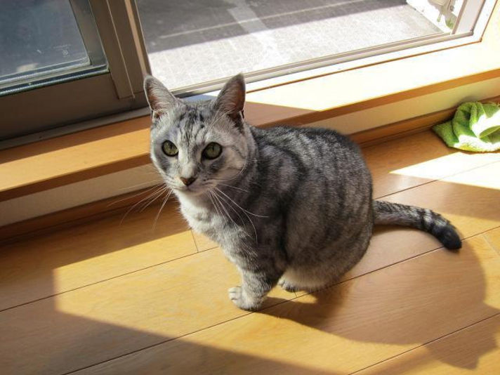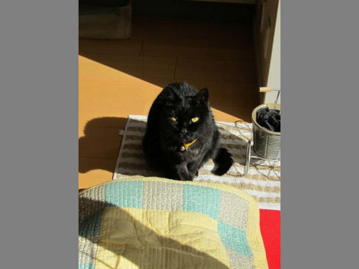寒さを感じて日だまりを見つけて体を温めています 左から 我が家に一番はやくからいるミー モール ギギです みんな気持ちよさそうにしています.......゜ 私も この日だまりに入りたいのですが体が大きく無理でした(笑) |