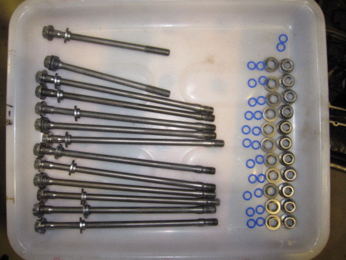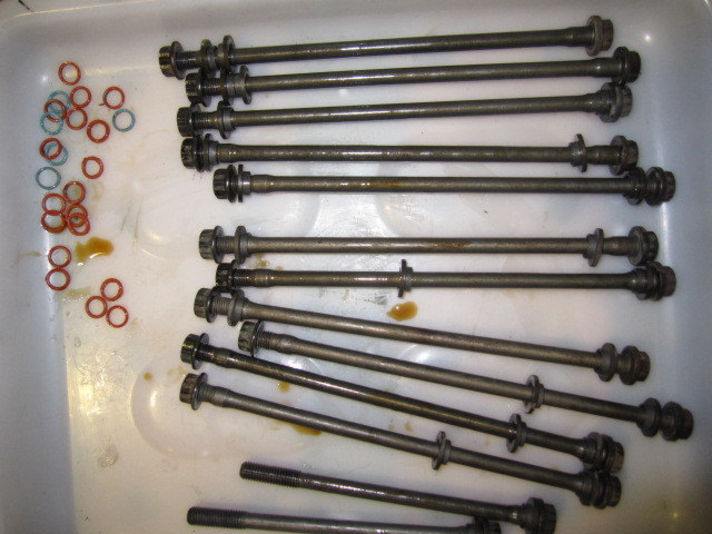 左の写真が エンジンから抜かれたスルーボルトと古いオーリングです