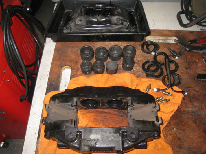 車両からキャリパーを取り、ブレーキフルードで押され出てくるピストン&シール交換です、リペアキットなる物がありセットで部品が送られてきます。