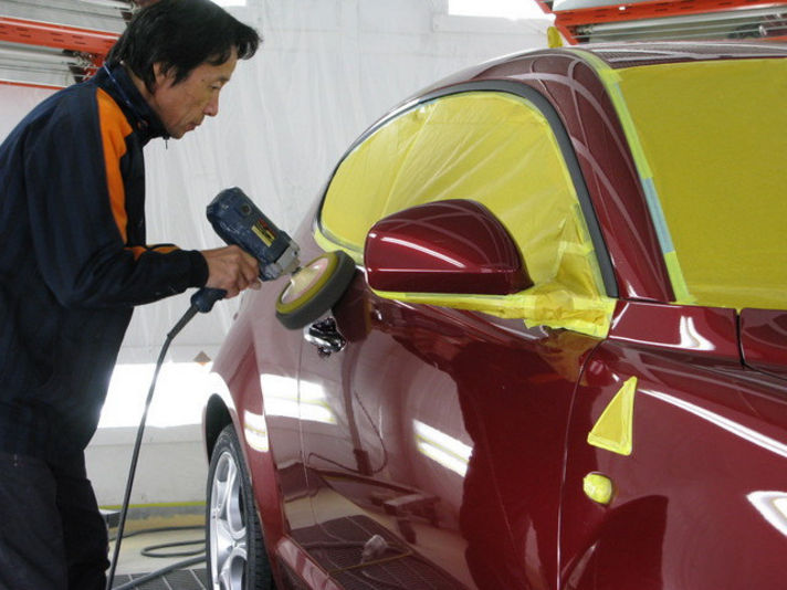マスキングが出来上がりましたので、電動バフによる磨き作業です。