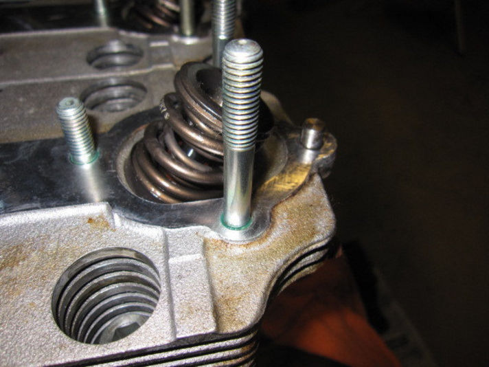 取り外されたカムハウジング及びチェーンケースなど全て洗浄して 精度を測りなおします また オイル漏れを防ぐためにも表面を細かな不純物(古いパッキン シール類)などは丁寧に全て取り除き鏡面に近い状態まで戻します 右の写真はカムハウジングを止めているボルトに新たにシールを打っていきます 今回はターボ車なので普段より高温に耐えられるシール剤を使います