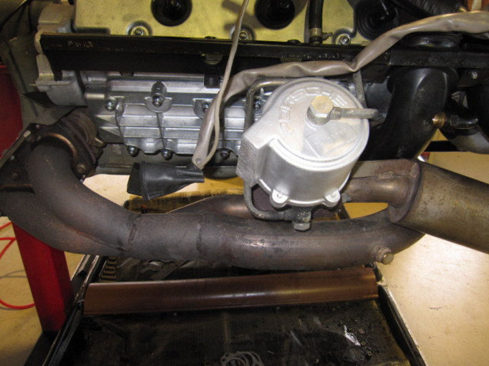 エンジン本体にタービン ウエストゲートが組み込まれました 930ターボの真ん中の写真 ウエストゲートのところにポルシェのロゴが 書いてあります...にくい演出ですね....見えないところにこだわり 吸気系 排気系の間にタービンをかまします まるで迷路のような配管になります みなさんもあまりに見る事が無いので 今回は写真をとりました 今から23年前に造られ約35前に設計された エンジですが 素晴らしい完成度です 左と右とでは熱料が異なるので 細かな部品まで計算されて作られています 今の時代には無い職人技が感動のエンジンです
