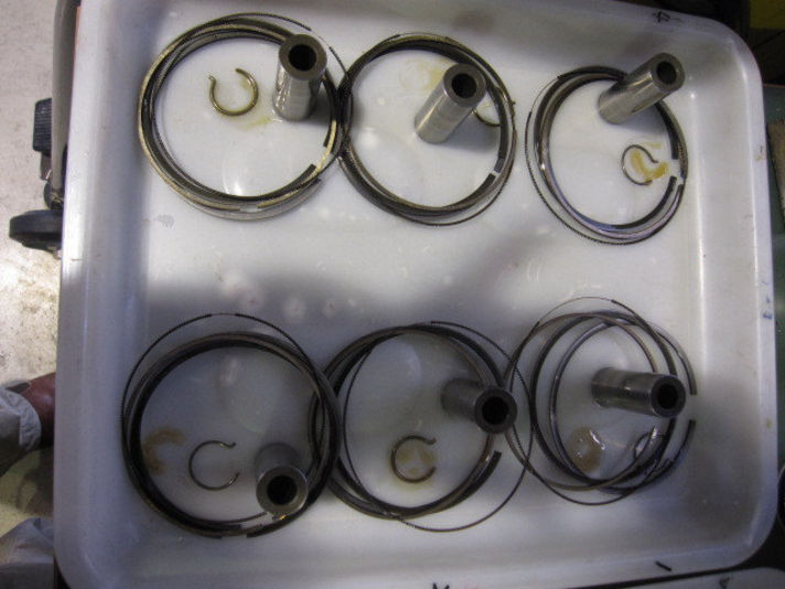 スルーボルトのオーリング交換がおわりました 次にピストンリング 左の写真の検品と掃除をしていると メカニック藤本が ピストンリングに裏表が記してある刻印が無い事に気がつきました 私に 今後の事を考えて(次回のOH)新品のリングに交換しますとの報告です ....製品自体に問題が無くてもこのような時には交換する事もあります 真中の写真です いよいよ右の写真 クランクケースにコンロッドにピストンピンをはめ込みピストン シリンダー リングを組み込みます