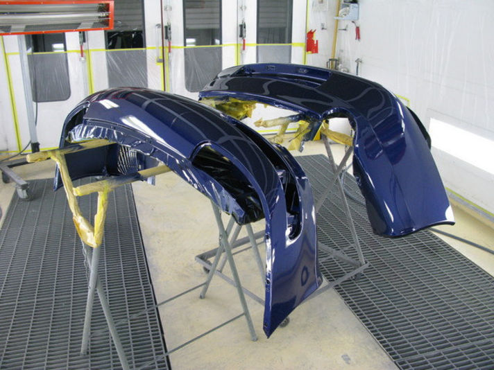 フロントバンパーとリヤバンパーも塗り上がりました。
