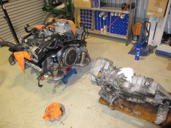 右の写真いよいよ クラッチがオーバーホールされてミッションとドッキングするところです......